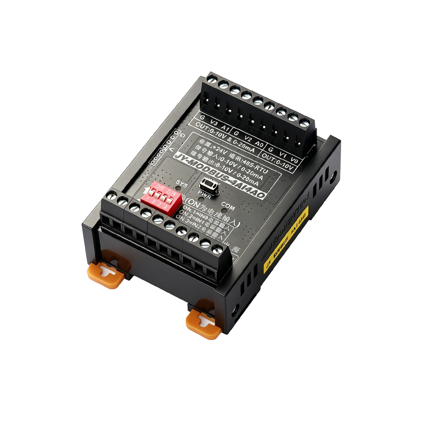JY-MODBUS-4AI4AO 为工业级 MODBUS RTU 模拟量采集输出模块,搭载 RS485 通讯,集成 4 路模拟量输入与 4 路模拟量输出。支持 0-10V、0-20mA 信号接入输出,具备电源防反接、浪涌防护设计,适配 PLC、组态系统扩展,结构紧凑,安装便捷,广泛应用于自动化数据采集与现场执行控制场景。