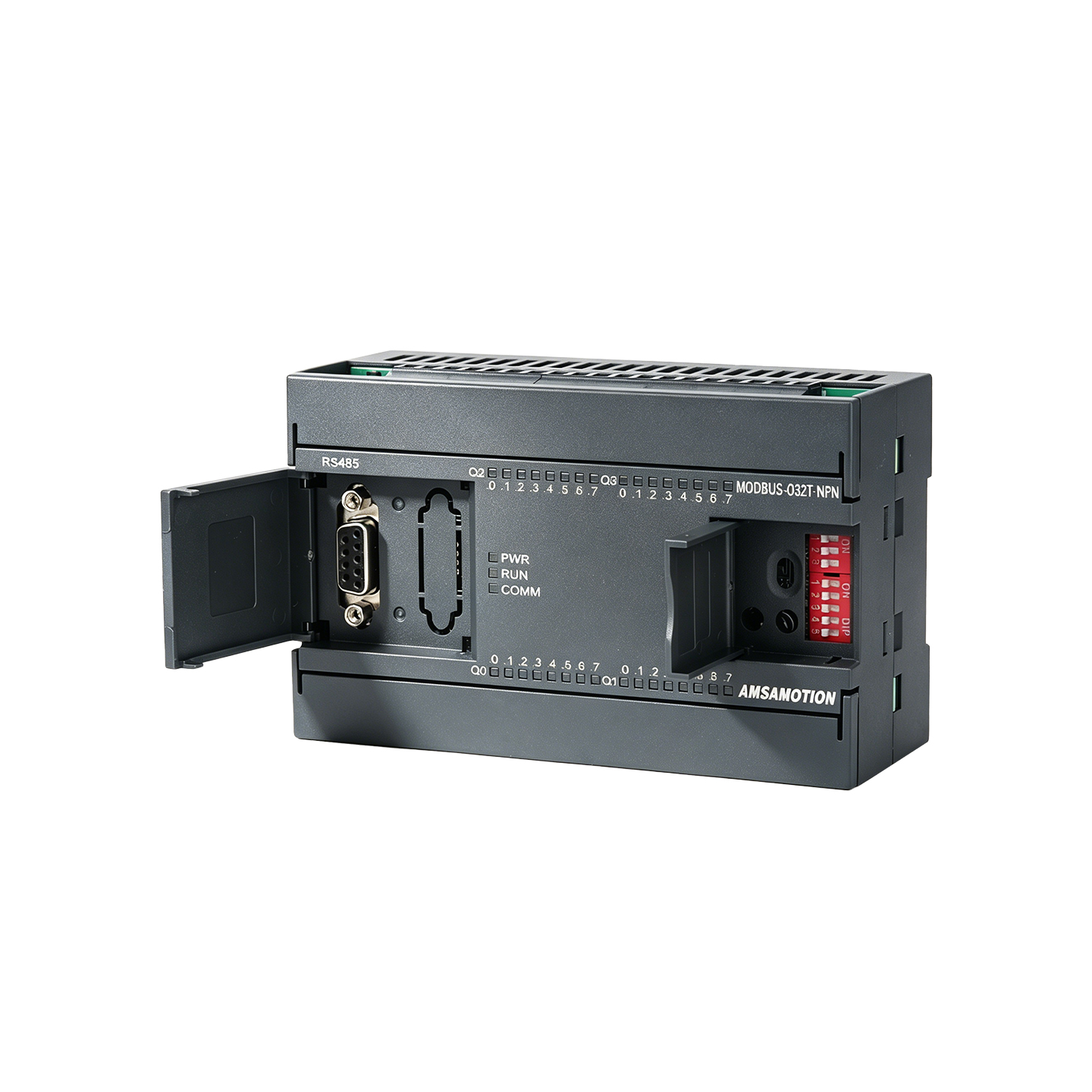 MODBUS-O32T 为 32 路 PNP 晶体管输出扩展模块,搭载 RS485 接口,兼容 MODBUS RTU 通用协议。支持拨码快速配置地址与波特率,工业 DC24V 宽压供电,具备防反接保护及通讯故障保护模式,安装便捷。