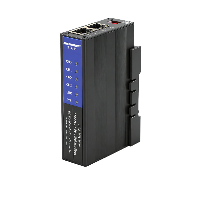 EC2-MB-M04 为 4 路独立 EtherCAT 转 Modbus RTU 协议转换模块,四路 RS485 通道可单独配置主从站与通讯参数。支持EtherCAT与Modbus RTU双向协议转换,4路独立RS485端口可分别配置为ModbusRTU主站、从站、透传模式,同时支持 64 条 Modbus 命令(slot)速接入 EtherCAT 总线。实现 Modbus 设备 与 EtherCA 工业以太网设备互联互通问题。